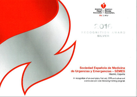 El Centro de Entrenamiento Internacional en Atención Cardiovascular de Emergencia de SEMES (Sociedad Española de Medicina de Urgencias y Emergencias) ha sido reconocido en 2016 y 2017 por la American Heart Association con el distintivo plata (Recognition Award Silver) por su intensa actividad formativa.
